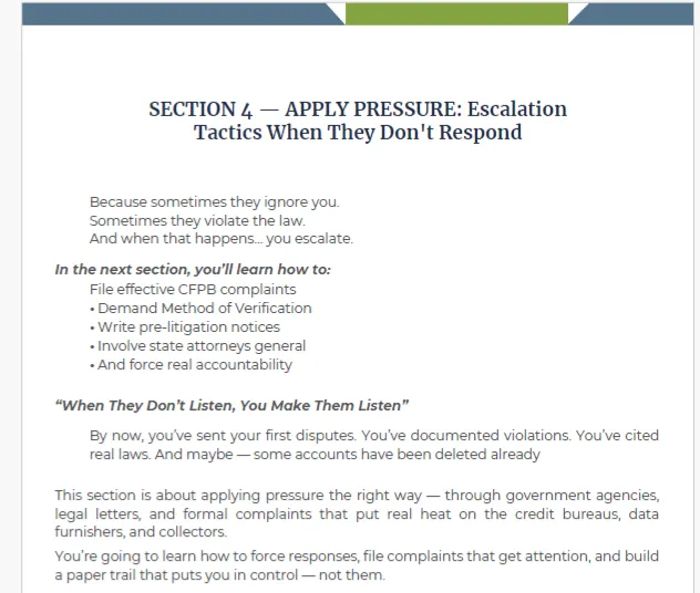Using the exact templates and pressure tactics inside, you’ll start removing collections, charge-offs, inquiries, and more — the ones bureaus don’t want to touch.