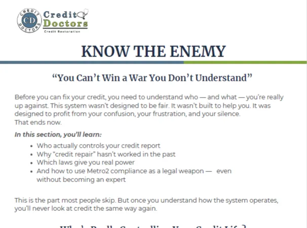 Credit Warfare™ is a no-fluff, battle-tested playbook that shows you how to take back control of your credit — even if it’s wrecked.